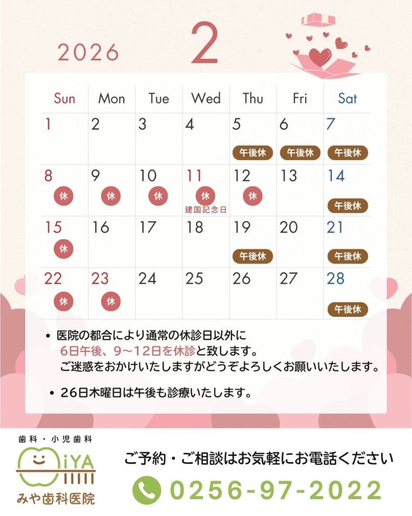 みや歯科医院の2月の休診日のお知らせです。